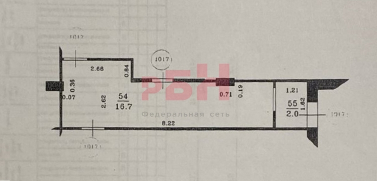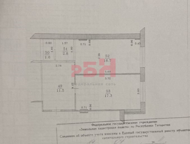 Площадь 49.9 м2 и часть коридора