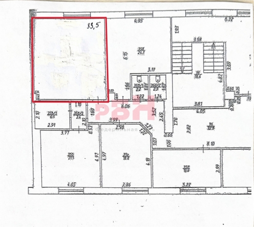 Общая площадь помещения – 33,5 кв.м.
