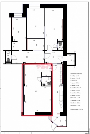Общая площадь помещения – 35,5 кв.м.