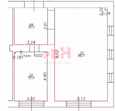Общая площадь помещения - 73.7 кв.м.