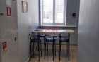 - комната приема пищи с окном, техникой и мебелью