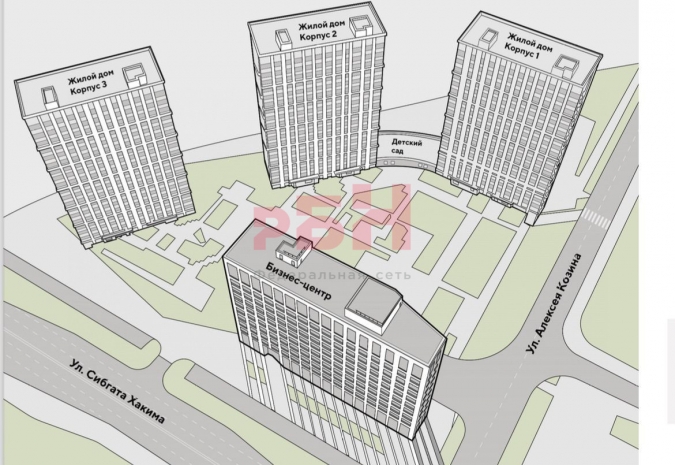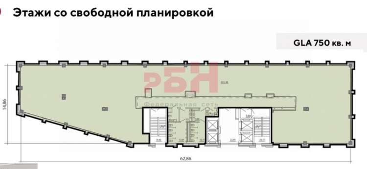 12-и этажный бизнес-центр, общая площадь каждого этажа 750 кв.м.