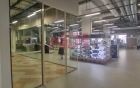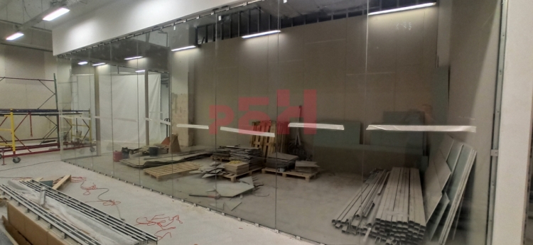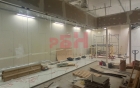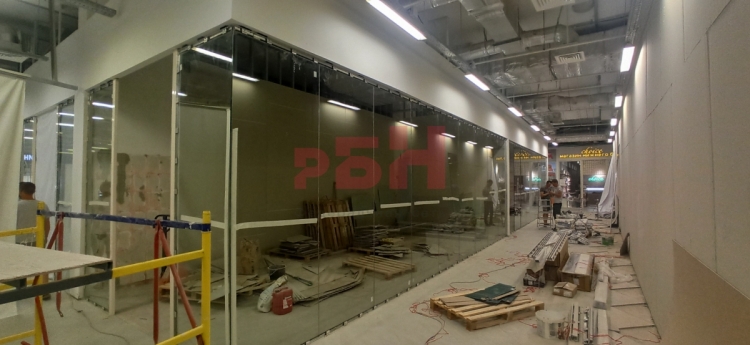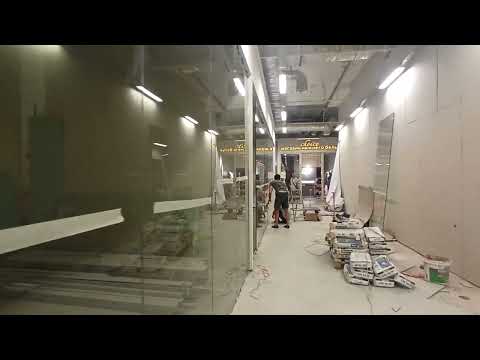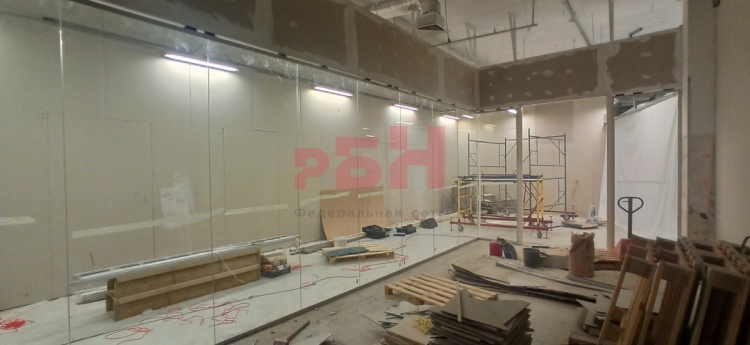 - керамогранит на полу, стены ГКЛ, витражное остекление;