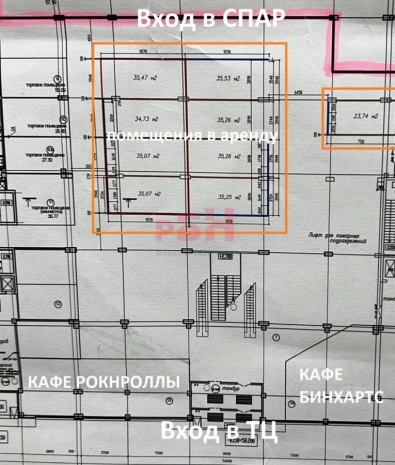 - помещение расположено напротив входа продуктового гипермаркета.
