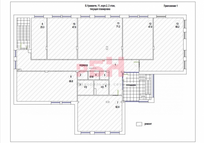 Помещение расположено на втором этаже отдельно стоящего нежилого здания.