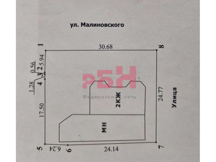 - фасад на ул. Малиновского - 30,68 метров